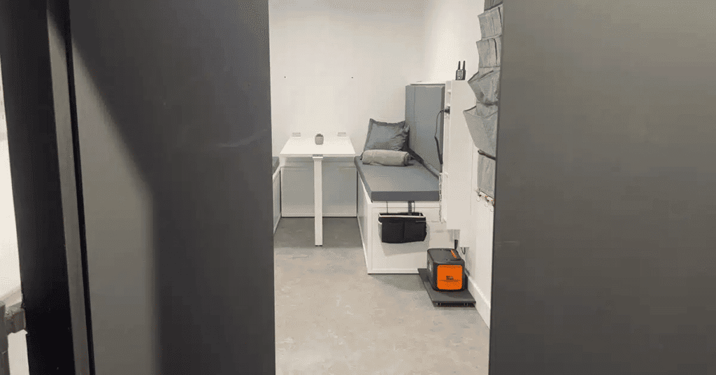 DR-Bunkers uit Heist-op-den-Berg richt zich dan weer op bovengrondse bunkers of ‘safe rooms’. Deze lijken op een standaard zeecontainer. “Buren weten dus niet dat het om een schuilplaats gaat”, zegt Peter, die de bunkers bouwt. Kijk hier binnen in hun kogelwerende bunker.