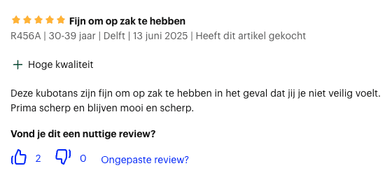 Op het internet waren de reacties op de Kubotan veelal positief. “In je jaszak stoppen als je uitgaat bijvoorbeeld”, schreef iemand. “Stevig en ligt goed in de hand”, was een andere reactie.